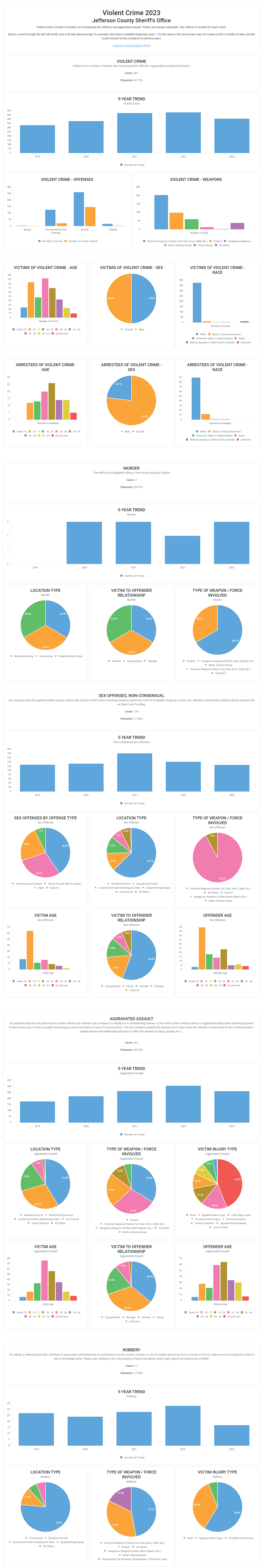 Violent Crime consists of murder, non-consensual sex offenses and aggravated assault. Victims are always individuals. One offense is counted for each victim.