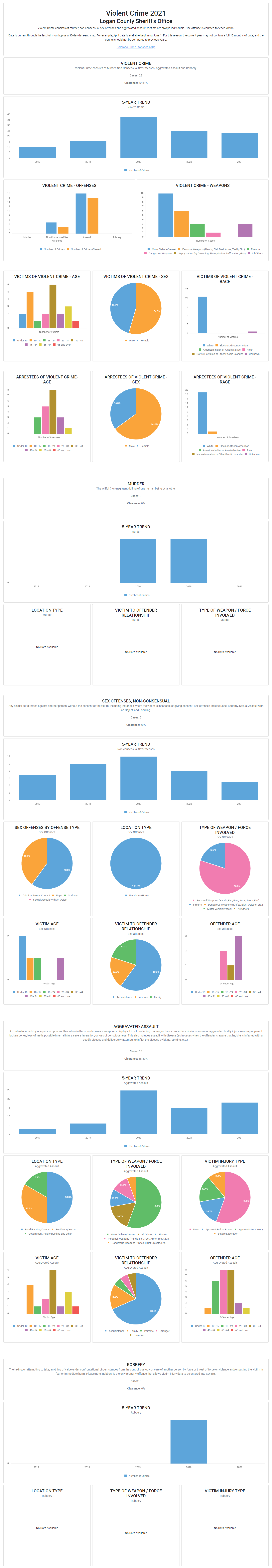Violent Crime consists of murder, non-consensual sex offenses and aggravated assault. Victims are always individuals. One offense is counted for each victim.